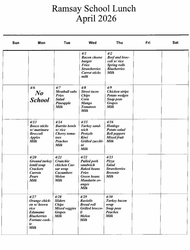 Happy 2026!!! Ramsay School is having an excellent spring! Please find the Ramsay School 2025-2026 school calendar here: 2025-2026 Calendar The Ramsay School track season has begun!! The practice schedule is available on the…
